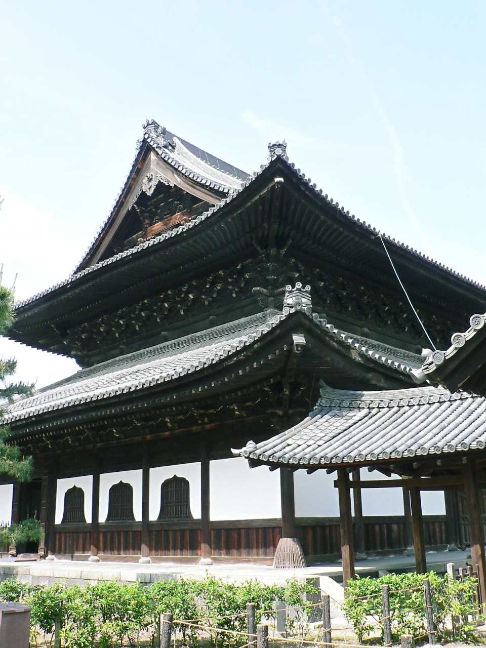 建仁寺 (けんにんじ)は、臨済宗建仁寺派大本山の寺院で1202年に鎌倉幕府2代将軍源頼家(1182−1204年)の援助で栄西(えいさい・ようさい1141−1215年)が開山した。日本で最初の禅寺で俵屋宗達(-1643年)の「風神雷神図」の襖絵で知られる。豊臣秀吉(1537−1598年)を祀る高台寺や、「八坂の塔」のある法観寺は建仁寺の末寺。市バス「東山安井」下車、西へ徒歩約5分。