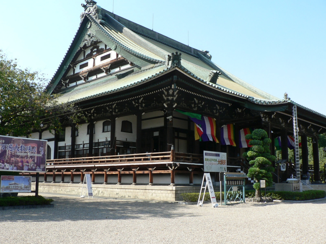元禄年間(江戸時代前期)に第46世・大通が諸堂を再建し法儀の用具を完備して融通念仏宗の本山として現在に至っている。境内には30余りの堂宇があり本堂は大阪府下最大の木造建築とのこと。- 旅行時期