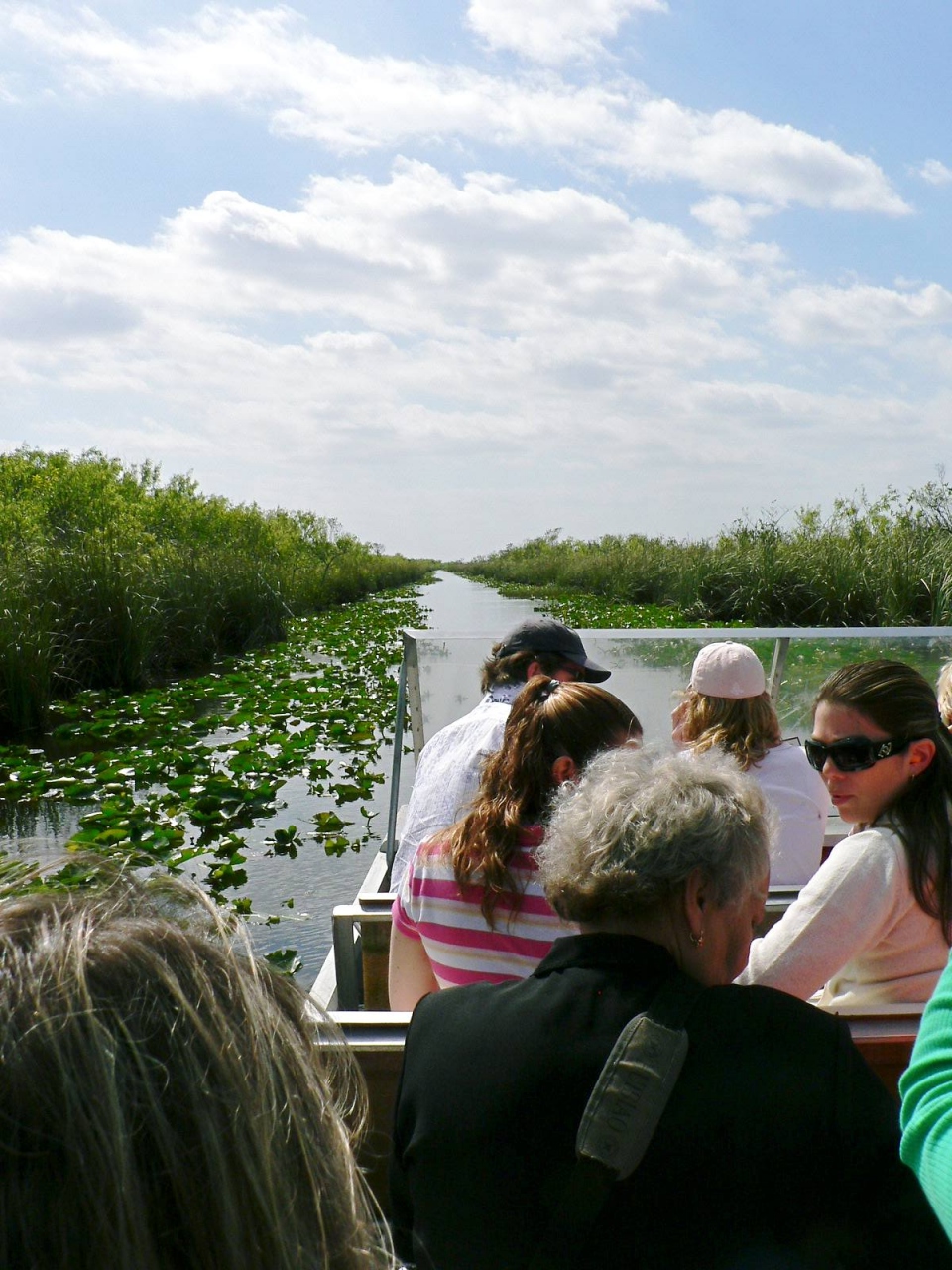ツアーはマイアミのホステルで予約したが日本でも予約できる。費用は50米ドル・6000円だった。バスがホテルまで送迎してくれる。約5700平方キロの広大な湿地帯をホバークラフト(エア・ボート)で観光する。湿地帯に亜熱帯性のイトスギやマングローブなどの森林の間からワニや水鳥などの動物を見ることができる。1979年に世界自然遺産に登録されている。