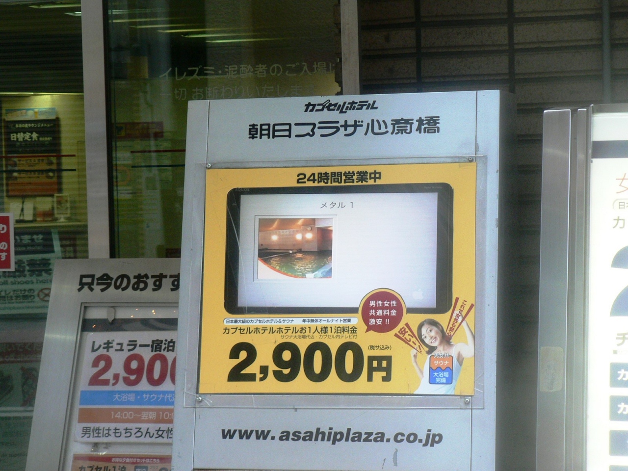 大阪市中央区西心斎橋のアメリカ村にあるカプセルホテル朝日プラザ心斎橋はカプセルレギュラータイプ1泊 2,900円で無料で利用できるパソコンがあり、2階のダイニングエリアで朝食や軽食を提供してる。. 441室あり女性も泊まれる。