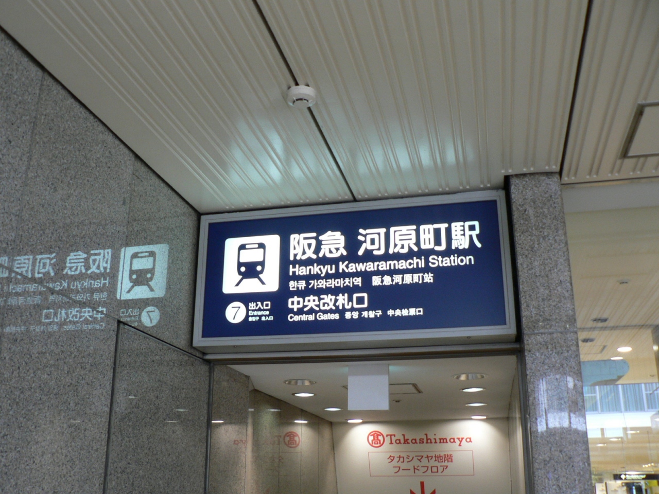 河原町駅(かわらまちえき)と地下道で連絡している烏丸駅(からすまえき)
