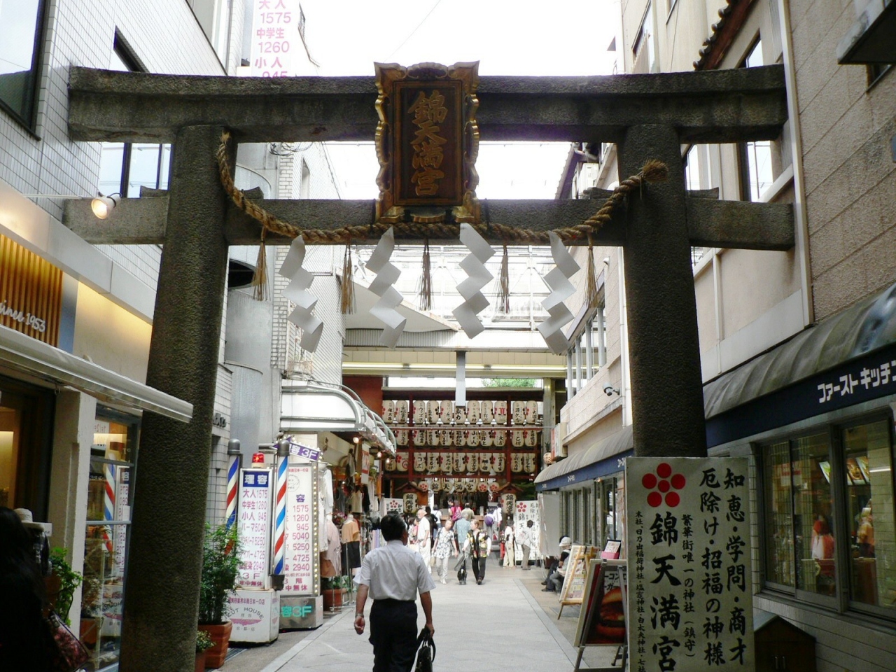 錦天満宮(にしきてんまんぐう)は天満天神(菅原道真)を祀り錦市場の東の端にあり学業、商売繁盛の神とされている。