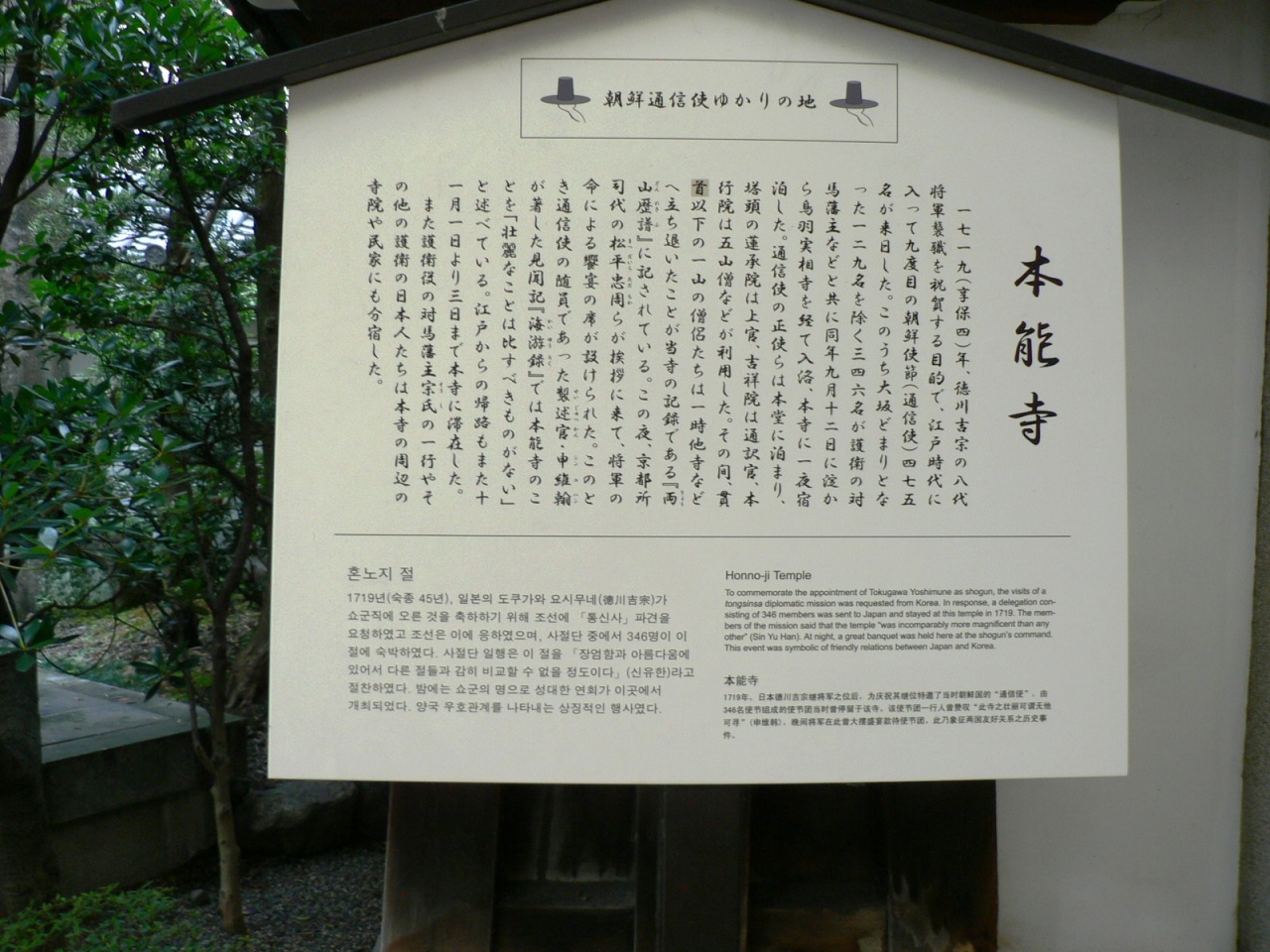 日隆の開山以来、尼崎の本興寺とともに山号はなく両山一貫主制をしいていたが、その後、歴代貫主が地方に布教し、日承の時代には末寺が畿内、北陸、瀬戸内沿岸諸国さらに種子島まで広布し、本能寺を頂点とする本門流教団が成立している。- 旅行時期