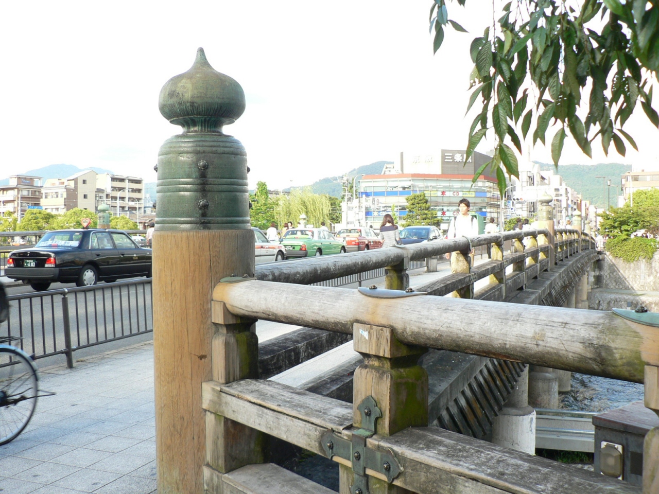 三条大橋(さんじょうおおはし)は鴨川に掛かっている三条通の橋で1590年に豊臣秀吉 の命により五条大橋と共に増田長盛を奉行として石柱の橋に改修され江戸時代には五街道のひとつ東海道につながる橋として幕府直轄の公儀橋に位置付けられ現在の橋は1950年に作られている。