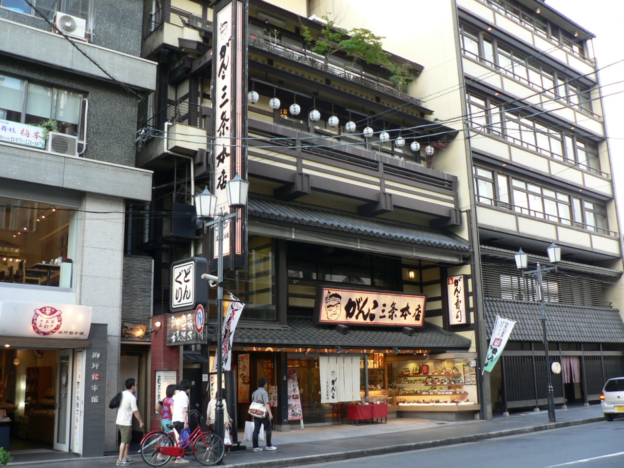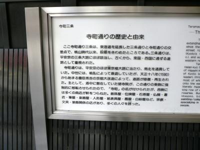 1872年に京都府参事槇村正直によって作られた比較的新しい通りで広大な寺域を誇った時宗十二派の四条派の金蓮寺が18世紀末から寺域の切り売りをし明治以前に売却地に料亭・飲食店・商店・見世物小屋が建っていたそうだ。隣の寺町通(寺町京極)に集まる寺院の境内が縁日の舞台として利用されるようになり各寺院の境内を整理し寺町通のすぐ東側に新しく道路を造ったのが新京極通のはじまりとのこと。現在は観光客の最も多い通りのひとつだ.。- 旅行時期