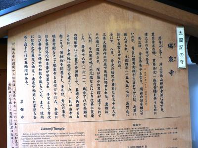 瑞泉寺は建立以来400年間にわたり秀次事件により死罪となった秀次と連座した一族・家臣の菩提を供養している。寺には秀次の首を納めた石櫃と秀次の墓を囲むように秀次の遺児、継室、側室32名併せて39名の墓と殉死した秀次の家臣10名の墓がある。墓の前には処刑された全員の石塔の位置と処刑の順番が記されている。- 旅行時期