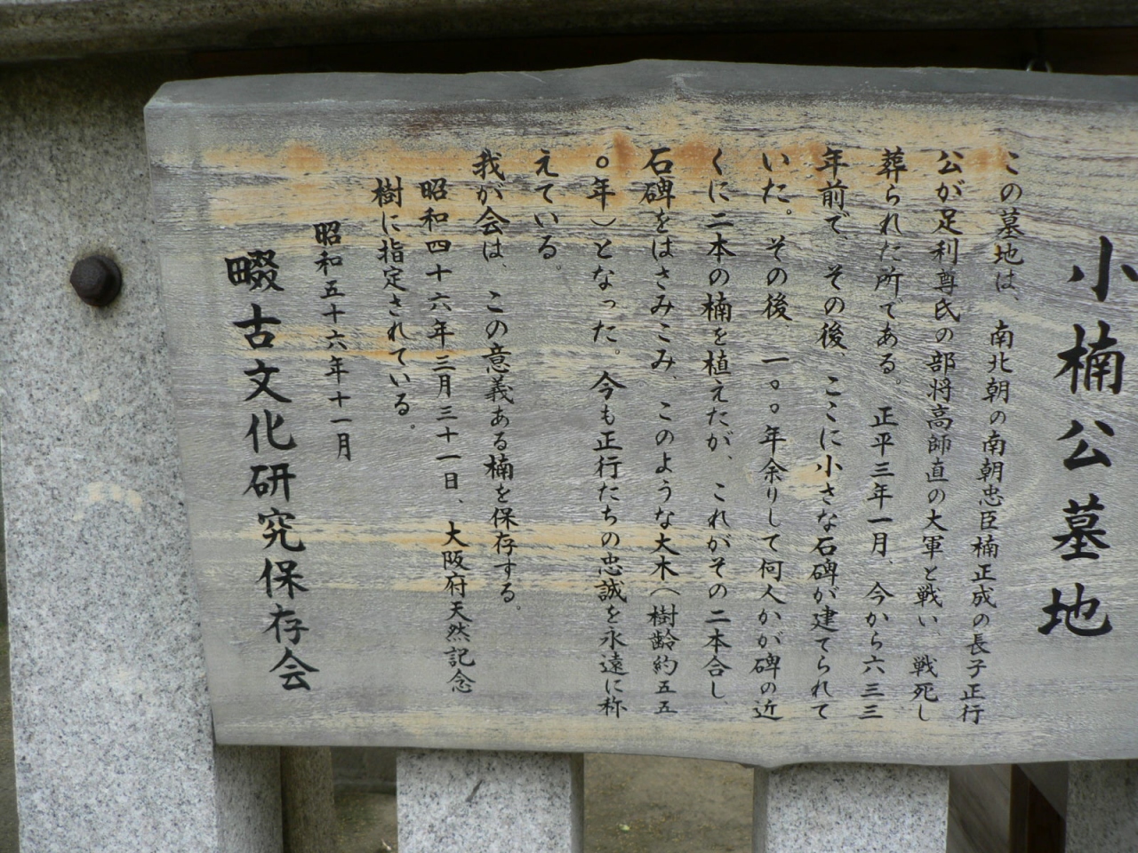 南北朝時代の南朝の将、楠木 正行(くすのき まさつら、生誕不詳−1348年)の墓、小楠公御墓所(しょうなんこうごぼしょ)