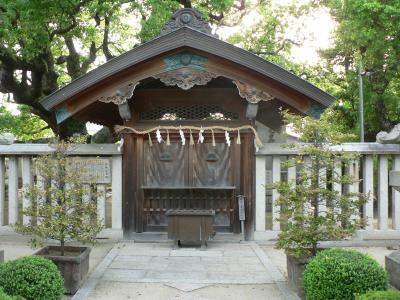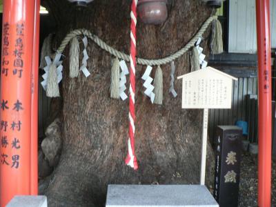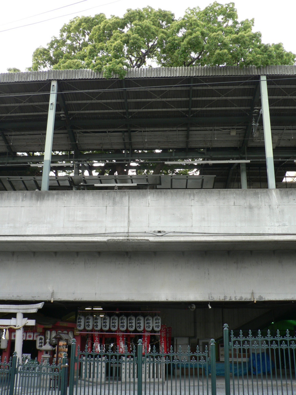 神木の楠が駅のホームを貫いていることで知られている萱島神社(かやしまじんじゃ)