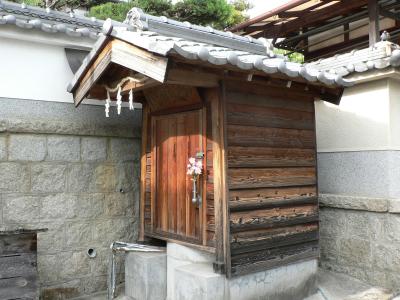 高宮神社の鳥居の前を50mほど東へいったところに井戸屋形があり屋形は瓦葺きで三方を囲い、一方を方開きの戸にして水を汲むようになっている。