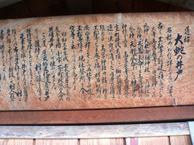 生駒山系から続く丘陵地の最北端に位置する寝屋川市から交野市にかけては良質な地下水が豊富に湧き出す事で知られており四条畷市との境界に近い高宮神社のすぐ傍に湧き出す『大蛇の井戸』も名水の一つ。昔、井戸の近くに森があり、そこにすみついた大蛇がよくこの井戸の近くで見られたことから名づけられたと伝えられている。