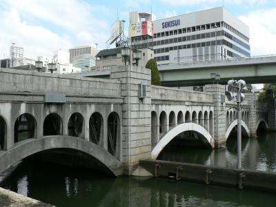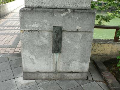 天神祭の鉾流神事が橋のたもとで行われることが名の由来、鉾流橋(ほこながしばし)