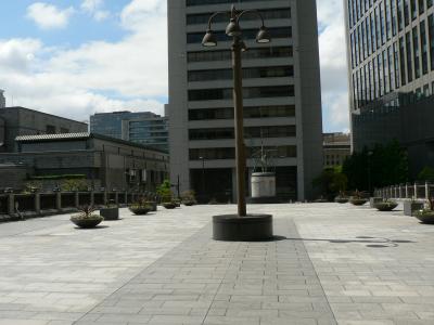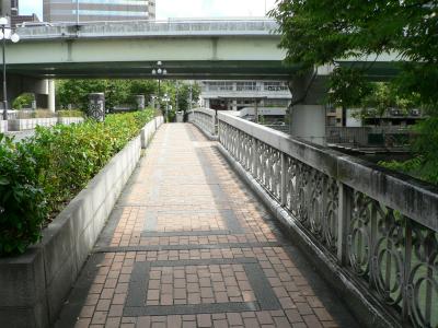 中之島ガーデンブリッジは1990年に完成した堂島川の大江橋と渡辺橋の間に架けられている新しい橋で京阪中之島線大江橋駅1番出口から約50m。歩行者専用の橋で全日空ホテルの前に階段があり階段横に堂島米市場跡記念碑がある。橋の上の幅員は広めになっておりくつろげる空間が確保されている。新しい橋なので橋はわたるだけでなく楽しむ場にするという発想が感じられる。