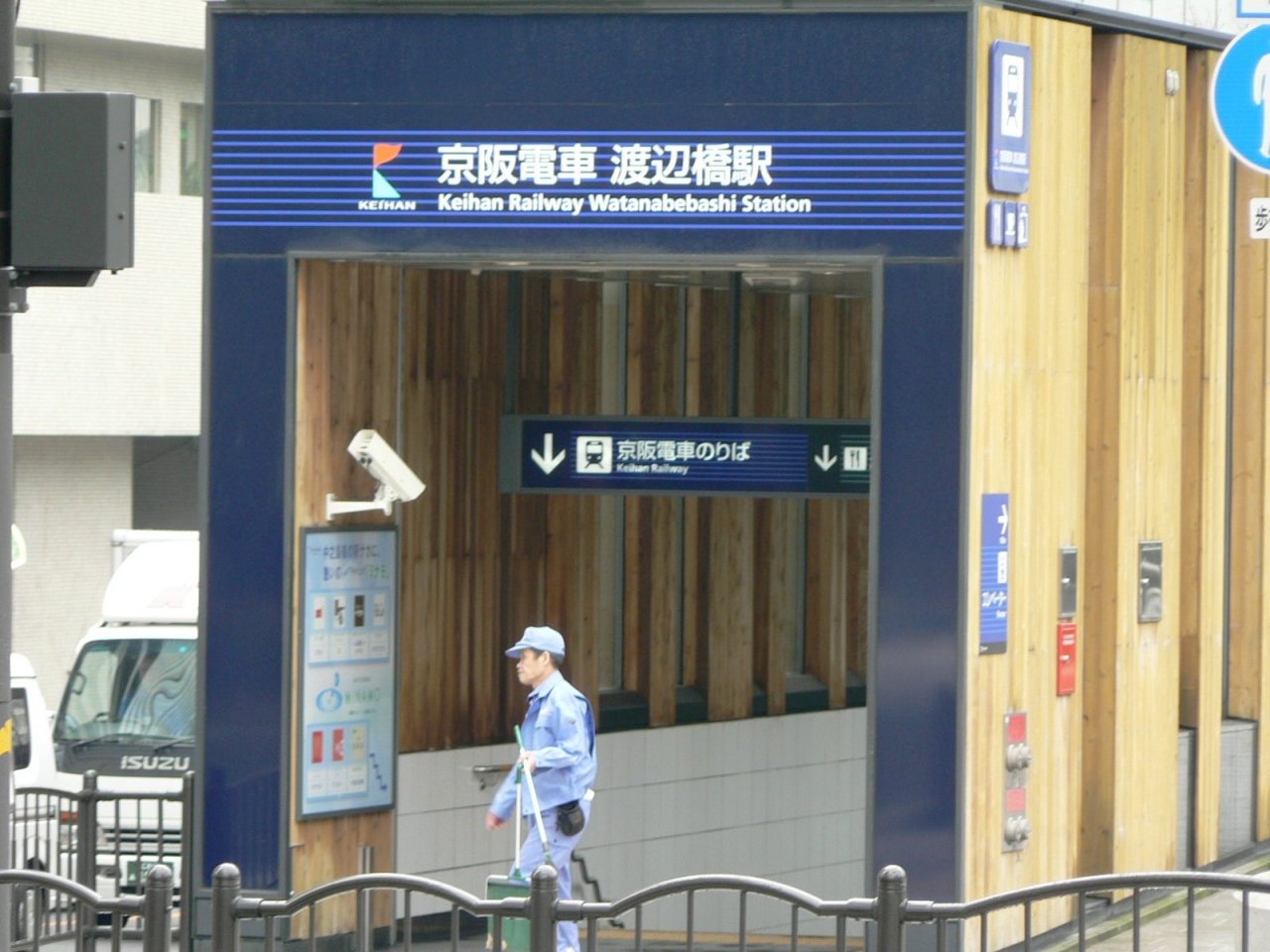 中之島フェスティバルタワーに近い京阪電気鉄道中之島線渡辺橋駅(わたなべばしえき)