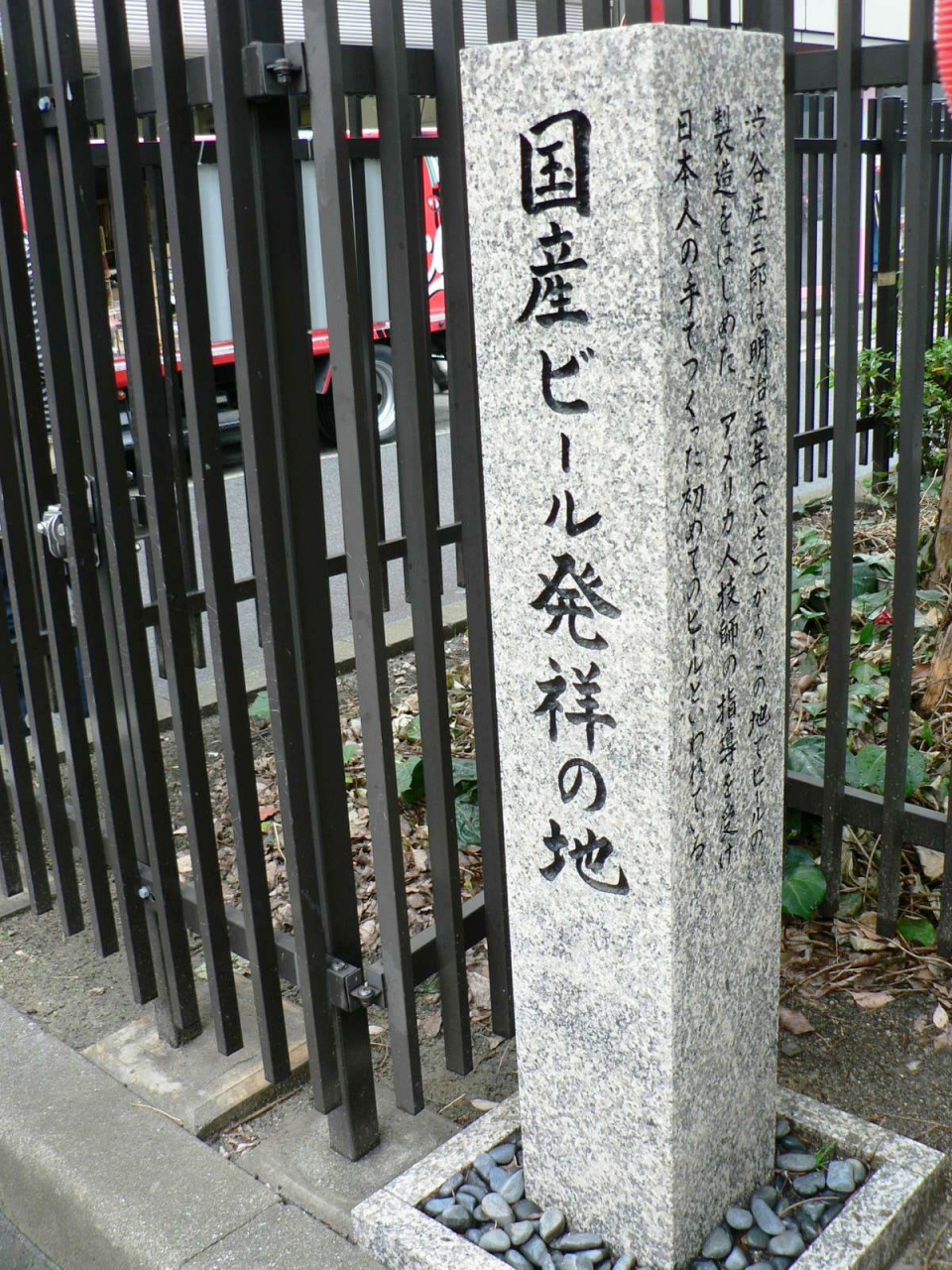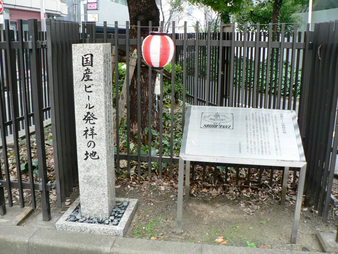 大阪市北新地(きたしんち)のANAクラウンプラザホテル大阪の北東側、3本の道路で囲まれた三角地帯に発祥碑と大阪市の教育委員会が設置した説明板が建っている。国産ビール発祥の地碑の説明板によると日本でのビール醸造は幕末に横浜で外国人がおこなっていたが日本人の手によるものとしては澁谷庄三郎がこの地で醸造したのが最初といわれているとのこと。