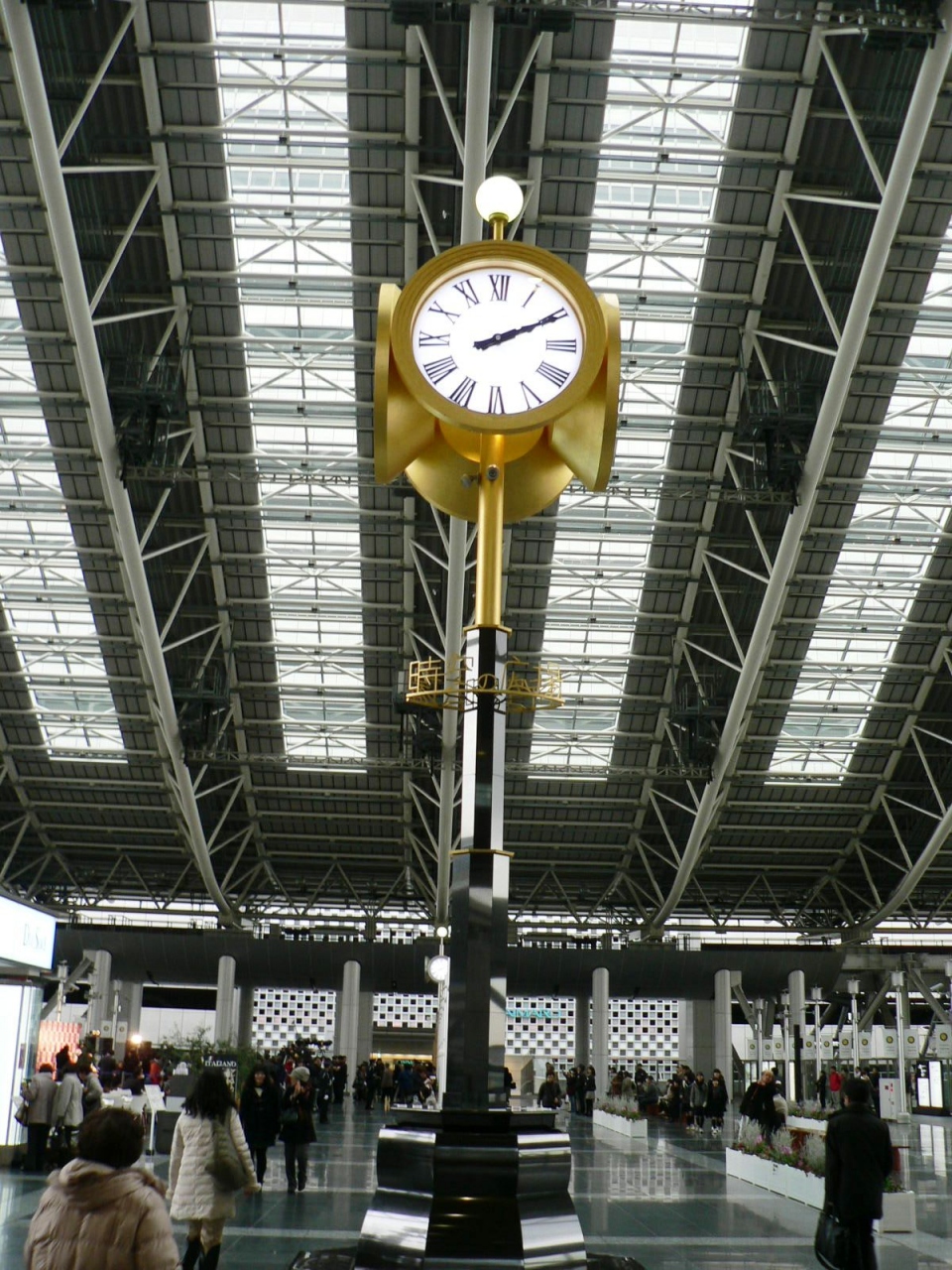 時空の広場(ときのひろば)は大阪駅ホームの上部を南北に横断する形で設けられた連絡橋の屋上部分にある。時空の広場は駅の南北、階下と階上を結ぶブリッジの位置で大阪駅のホームを見下ろすことができる。広場内に設置された金時計と銀時計は梅田エリアの新しい待ち合わせスポットで広場に並んでいるマルチポールにはガス灯をイメージした照明がついており広場の一角にはカフェも設けられ大阪駅を見下ろしながらお茶を楽しめる。