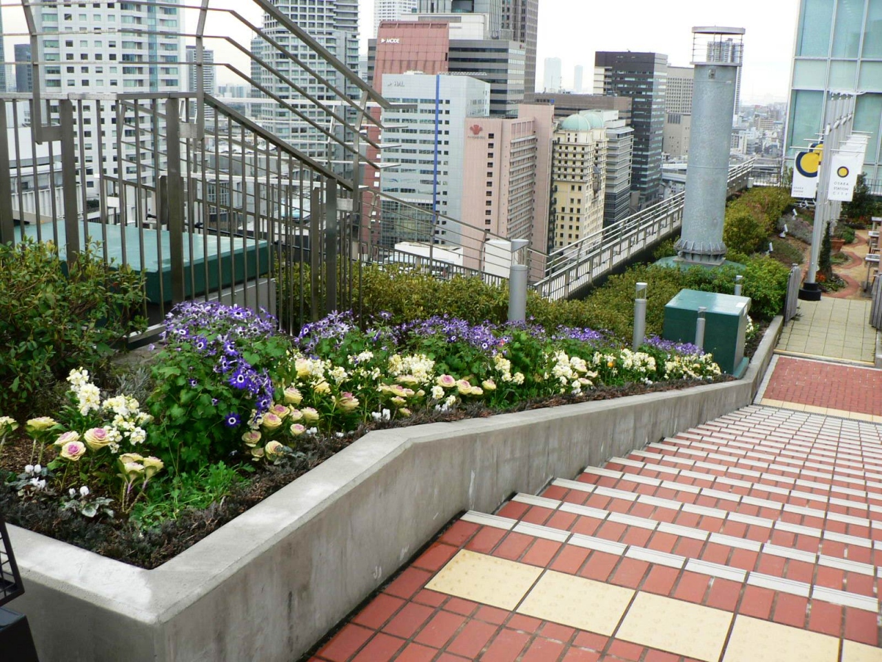 イングリッシュ・ガーデン風の庭園を造っているJR大阪駅の風の広場