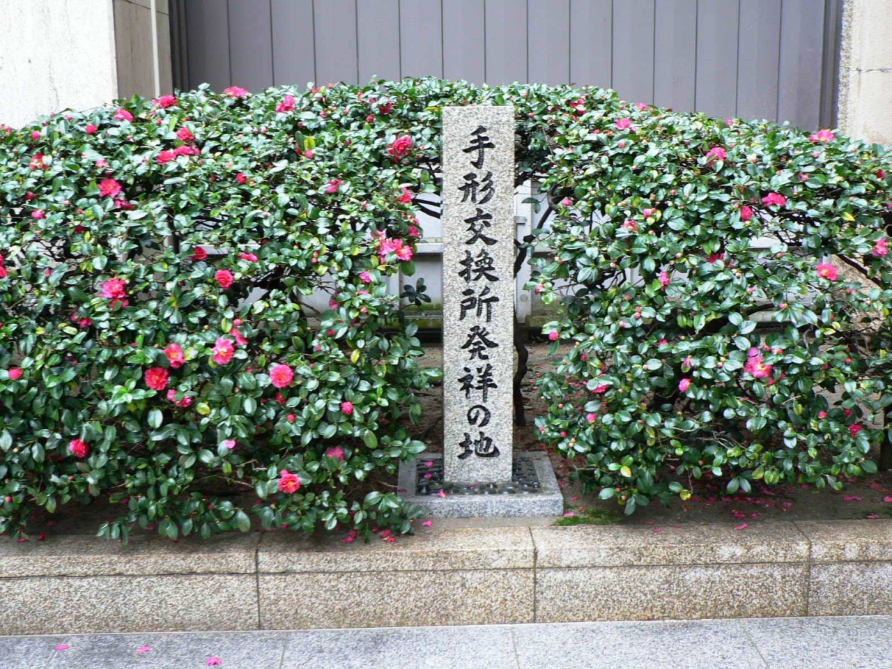 日本銀行大阪支店旧館前には大阪郵便役所跡(駅逓司えきていし).碑がある。