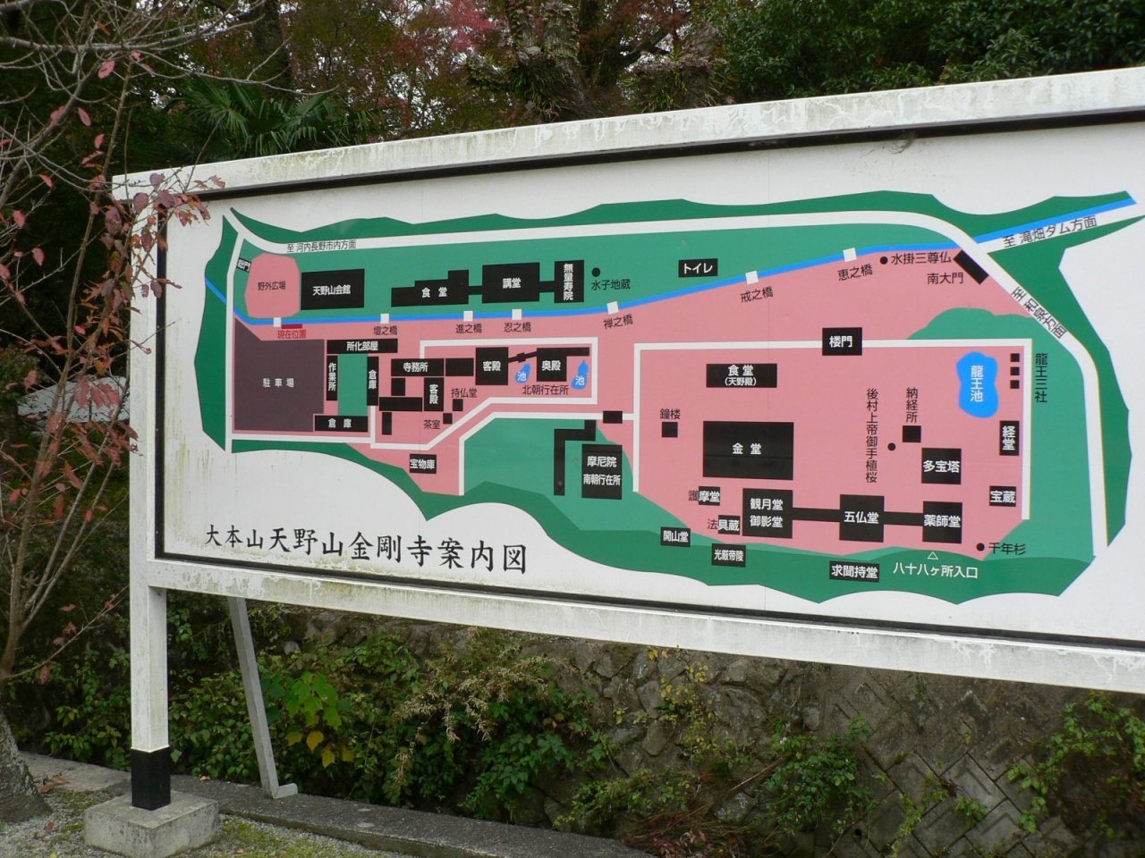 天野山金剛寺(こんごうじ)は平安時代末期に高野山の僧・阿観(あかん)が金堂・御影堂などを建立し、再興したとのことだが南北朝時代には南朝方の勅願寺とされ、父・後醍醐天皇の遺志を継いで南朝の京都回復を図り、大和の吉野・賀名生、摂津の住吉などを転々と行宮を変遷した後村上天皇(ごむらかみてんのう1328−1368年)の行在所(あんざいしょ)ともなったことで知られる。北朝の光厳・光明・崇光天皇の行在所とされた時期もあり戦火にも遭うことがなく、貴重な文化財が数多く残されている。