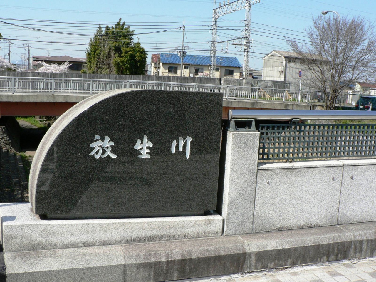 八幡平谷の買屋橋から京阪八幡市駅に近い全昌寺橋の200メートルの間、大谷川はその名を「放生川」と変える。この名は、石清水八幡宮の神事の放生会(ほうじょうえ)に由来する。