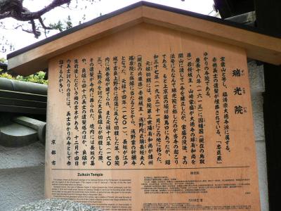 京都市山科区の瑞光院(ずいこういん)は臨済宗大徳寺派の寺で赤穂義士の遺髪が埋葬されている、「忠臣蔵」ゆかりの寺院。上京区の堀川鞍馬口にあったが、昭和三十七年(一九六二)に京都市山科区移ったとのこと。