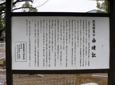 顕家の墓は、現在の王子町北畠公園に所在する「大名塚」と呼ばれていた塚を、江戸時代の国学者並川誠所が北畠顕家の墳墓と比定したことにより、当地周辺を顕家戦没ゆかりの地として顕彰したもので、現在の歴史観から見れば事実誤認があるようだが、園内の碑文などによると、大正・昭和と篤志家などの寄付により、墓地の整備などが図られ、現在に至っている。