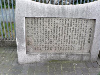 毛馬の地は俳人与謝蕪村の出身地として有名。蕪村は20歳頃故郷を出て各地を漂泊、晩年に『春風馬堤曲』によって故郷への思いを吐露している。後の淀川改修によって蕪村の出生地は川の中になってしまったが 毛馬の渡しは古い歴史があり大阪の北部から枚方、京方面へ行く人々はこの渡しを利用していたが大正3年、長さ155m、幅3.6mの木橋、初代毛馬橋が完成し経緯が橋詰の竣工記念碑に刻まれている。昭和36年に幅8mの橋が完成し昭和54年に25m幅の橋に拡幅されている。