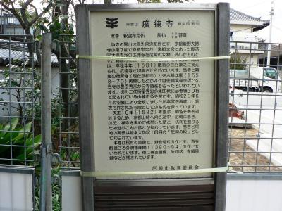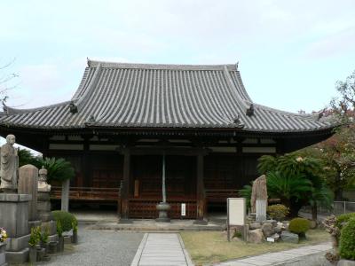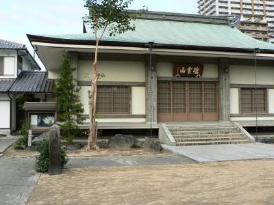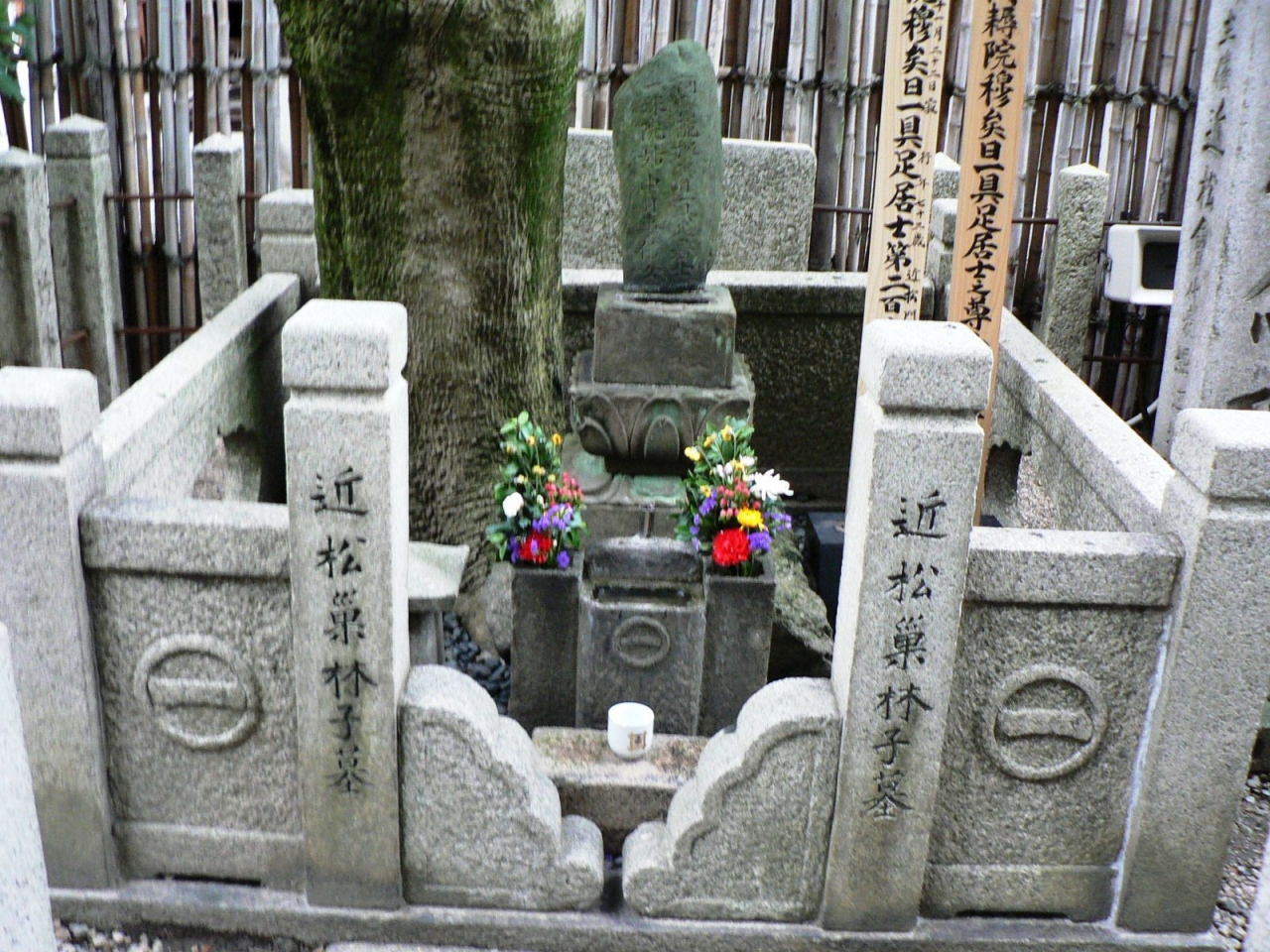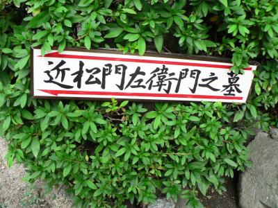 尼崎の廣濟寺(こうさいじ)の境内、本堂脇の墓地には高さ50cmほどの緑泥片岩の自然石の近松 門左衛門の墓があり『阿耨院穆矣日一具足居士(あのくいんぼくいにちいちぐそくこじ)』と生前、近松が自分でつけた戒名が彫られている。近松門左衛門の墓前にはボタンを押すと自動的に説明が始まる音声ガイドがあり、近松の生涯の説明がとても詳しく解りやすかった。