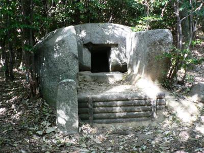 寝屋川市東端、生駒山に続く丘陵には多くの古墳が残り、打上神社(高良神社)古墳群の中で特殊な横口式石槨(せっかく)をもつ直径3m高さ1.5mの古墳が「石の宝殿古墳」として知られている。上面を平坦に加工した底石の上に、埋葬部分をくり抜いた蓋石が重ねられている。形式的に明日香村の鬼の厠(かわや)・鬼の俎(まないた)と同じで非常に特異なものだそうだ。日本に仏教文化が伝わった後に死者を火葬し骨を容器に入れて石の宝殿に納めたと推定されている。寝屋川市、枚方市など北摂地域に古墳は多く見られ、飛鳥時代の豪族は北摂地域にかなり住んでいたのだろう。