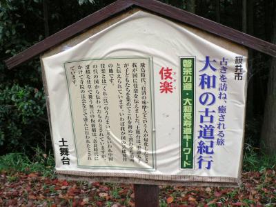 桜井市出身の文筆家保田與重郎(やすだ よじゅうろう1910−1981年)が、「土舞台」は日本最初の国立劇場であるとし、1972年「土舞台」と刻した標石の前で顕彰式典が挙行され来賓としてノーベル賞受賞の物理学者・朝永振一郎((ともなが しんいちろう1906−1979年)夫妻、劇作家の福田恒存(ふくだ つねあり1912−1994年)、昨年亡くなった俳優・森繁久弥(もりしげ ひさや1913−2009年)、仲谷昇(なかや のぼる1929−2006年)、岸田今日子(きしだ きょうこ1930−2006年)ら著名人が出席したとのことだ。土舞台(つちぶたい)跡の桜井公園は住宅街の中にあり、少しわかりにくくひっそりとした高台にあった。