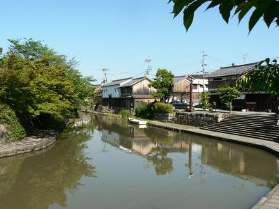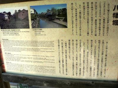 豊臣秀次が築いた八幡堀は琵琶湖と繋がり舟が行き来していた。今は、桜や花菖蒲が植えられ、四季折々の風景が楽しめ白壁の土蔵が並ぶ八幡堀の情緒ある風景を楽しめる。
