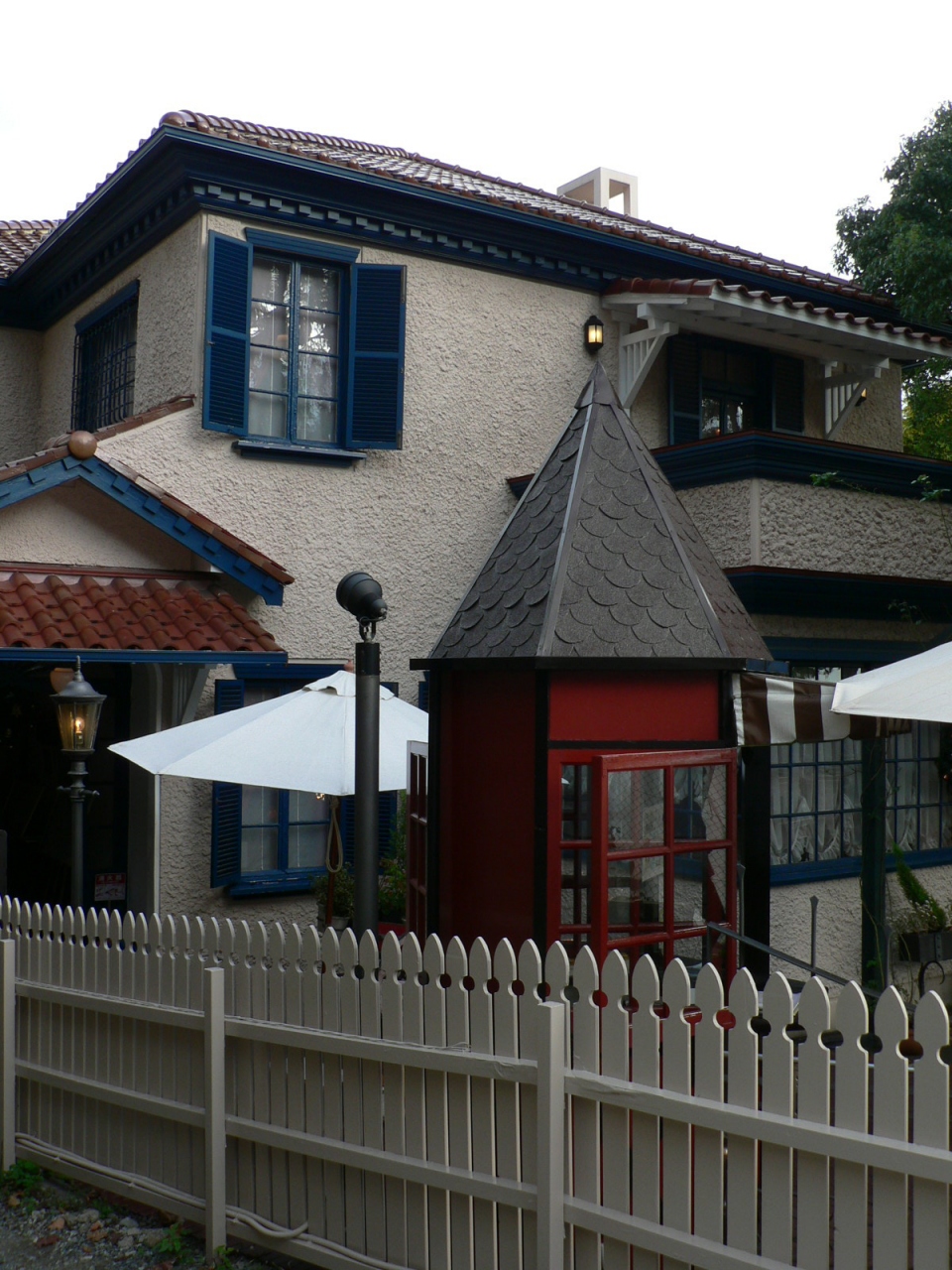 風見鶏の館の西にある建物は上下窓鎧戸付という典型的なコロニアルスタイルの2階建て建築で、2つの異るデザインのベイ・ウインドーやモザイク装飾の階段など、随所に贅沢な意匠が見られる。アメリカ合衆国総領事ハンター・シャープ(Hunter Sharp)の邸宅として1903年に建てられた。