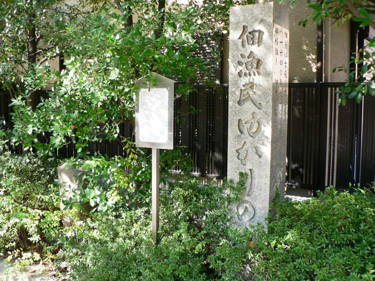この縁で佃、大和田漁民は家康を信奉し、1590年に34名が江戸に移住して海・川での漁業権を与えられ江戸城に魚を納めた。秀吉の死後、家康が秀頼(1593−1615年)を攻め豊臣家を滅亡に追い込んだ大坂の役(おおざかのえき1614−1615年の大坂冬の陣と大坂夏の陣)では佃漁民は徳川方に味方し、武器運搬、船や食料の調達支援も行っている。大阪市西淀川区佃の田蓑神社の境内には徳川家康をまつった東照宮(とうしょうぐう)があり、「佃漁民ゆかりの地」の記念碑が建っており、家康と佃地域の深いむすびつきを伝えている。