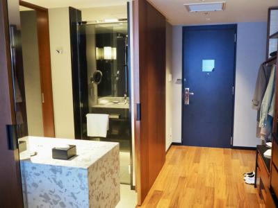 実際の平米数より広めで快適の客室は、開放感のある水回りとオープンクローゼットが関係していると思います。