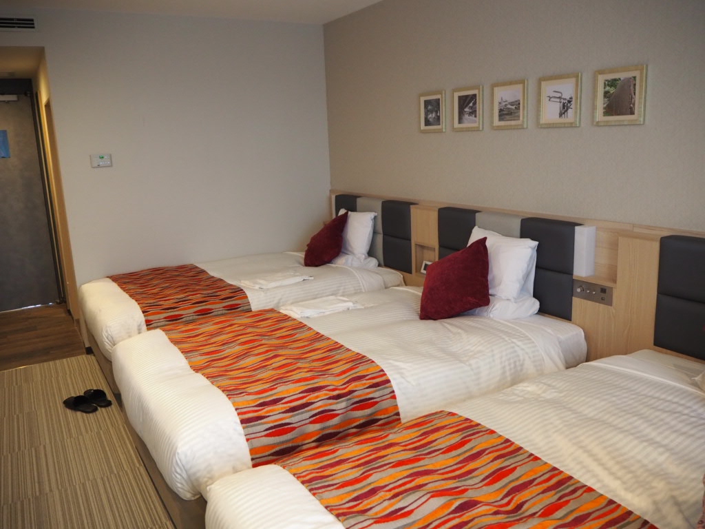 セミタブルベッド3台のトリプルルームは珍しいですし、3人旅にはとても有り難いもの。