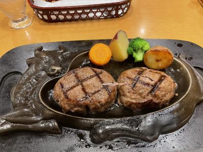 げんこつ(250g)・おにぎり(200g)ハンバーグは赤身主体でサッパリと美味しかった。
