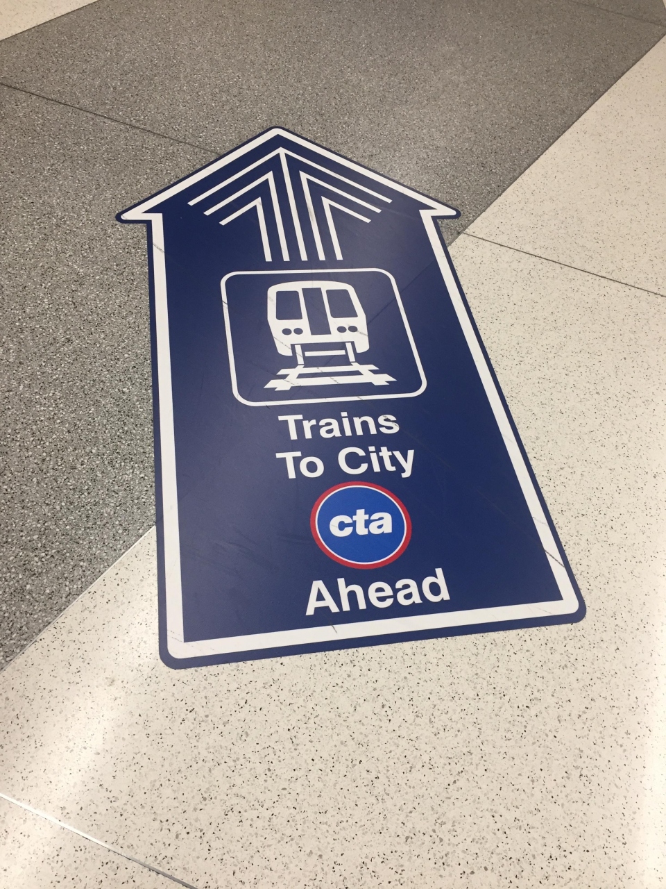 シカゴオヘア空港ターミナル2と3から地下通路で簡単にアクセス出来ます。2の方が近いので3以外のターミナルに到着した場合は、2から下に降りるとサインが出ていますので、駅を見つけることはそんなに難しくないと思います。
