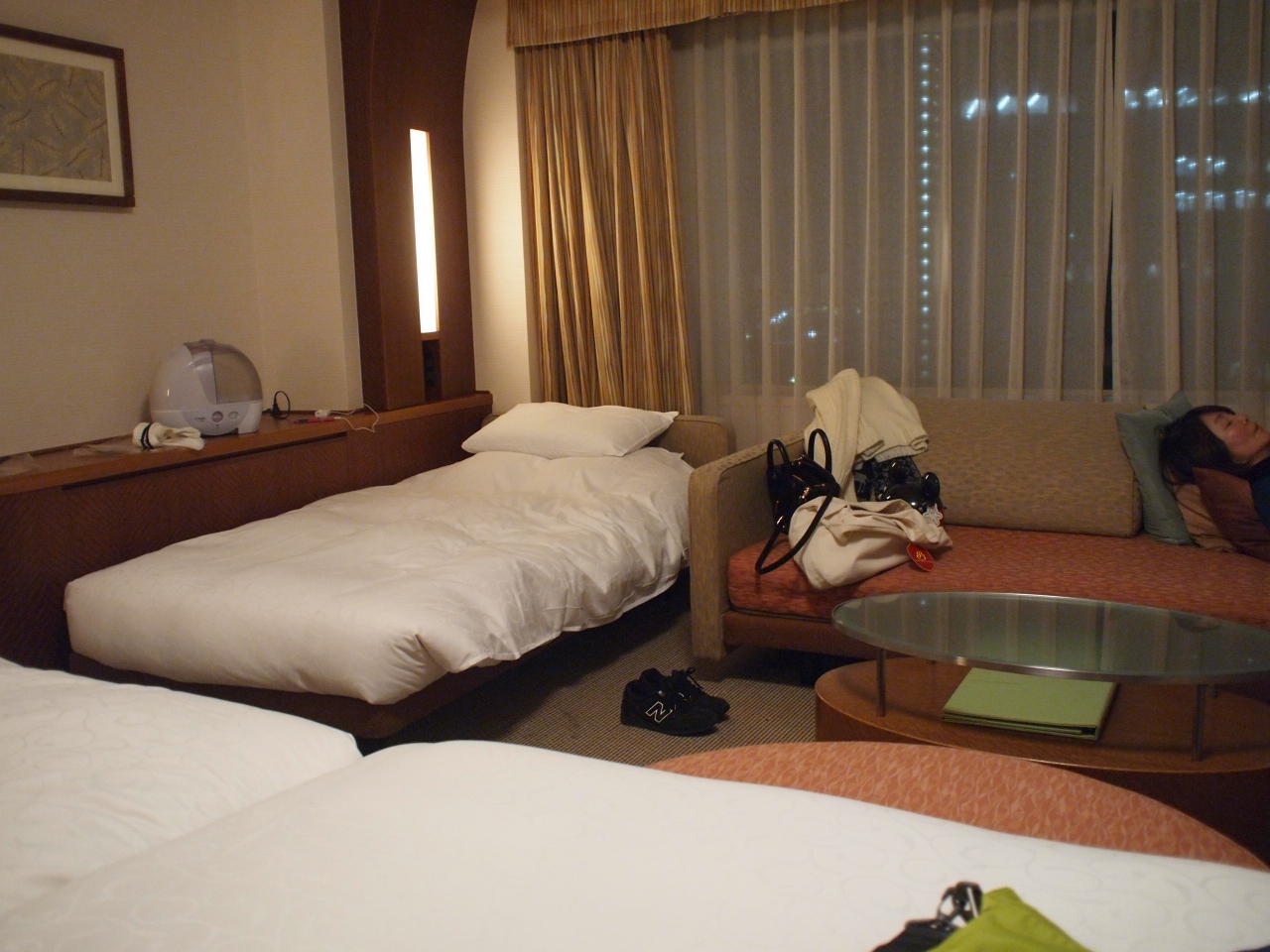 ツインルームは窓側にベッド、パーテーションを挟んでソファベッドが置かれていますのでミニミニスイートルームの趣きです。