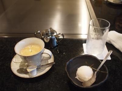 サラダ、ステーキ、焼き野菜、ご飯、赤出し、香の物、コーヒーそしてシャーベットで3980円。