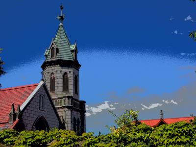 カトリック元町教会と並んで元町エリアのランドマークで、2つの教会はすぐ近くにあります。