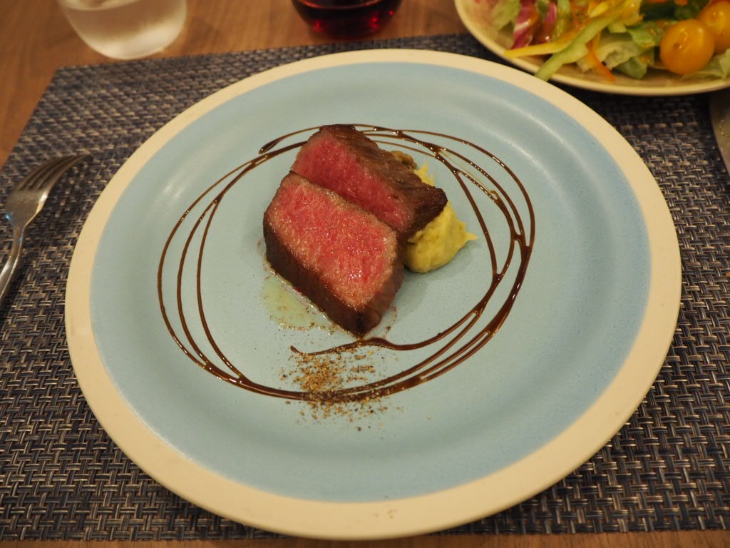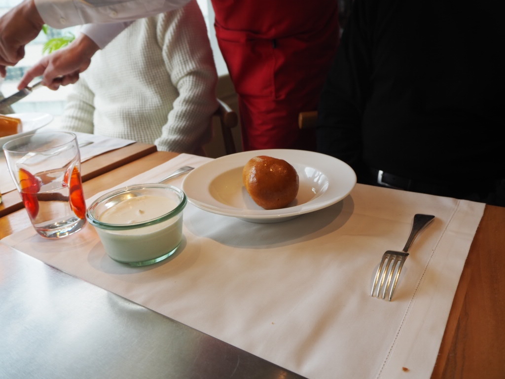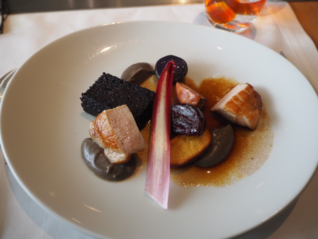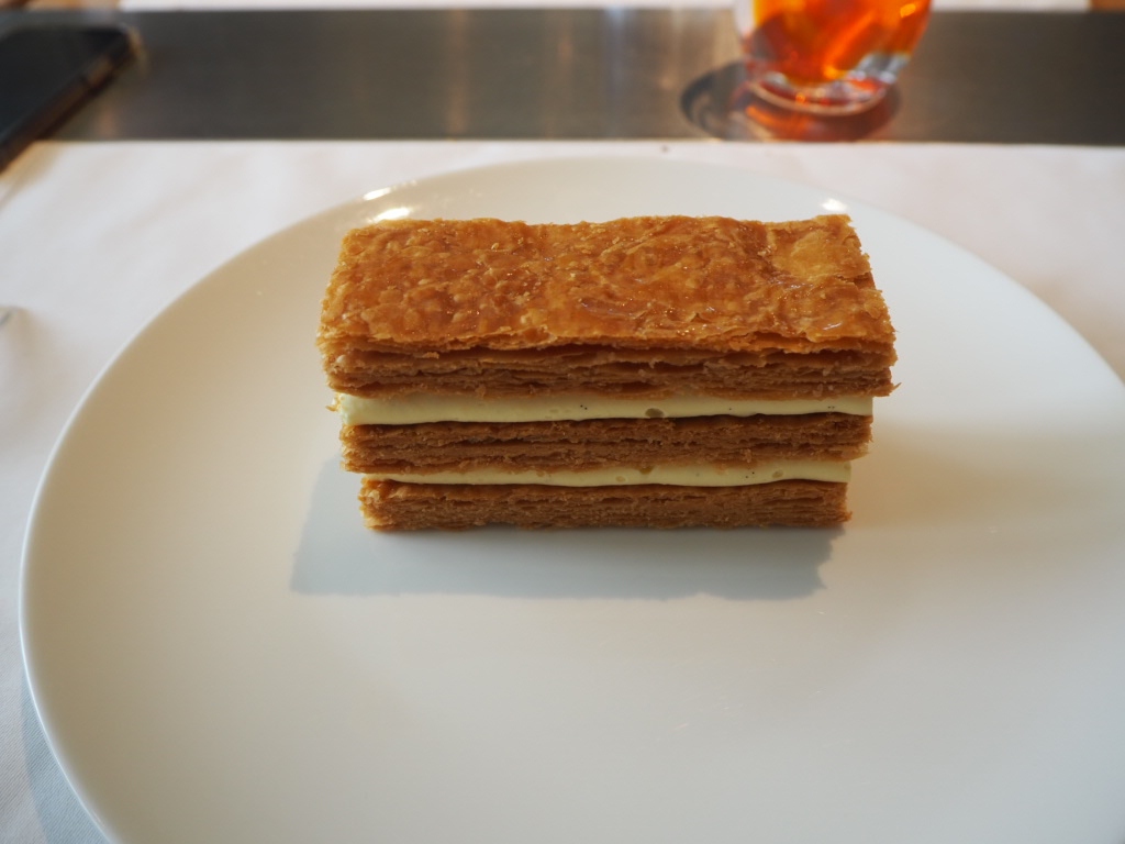 アミューズのグジェールに始まり、オードブルのサーモンマリネ、メインのポークロースト・ブーダンノワール、デセールのミルフィーユも全て素晴らしかった。
