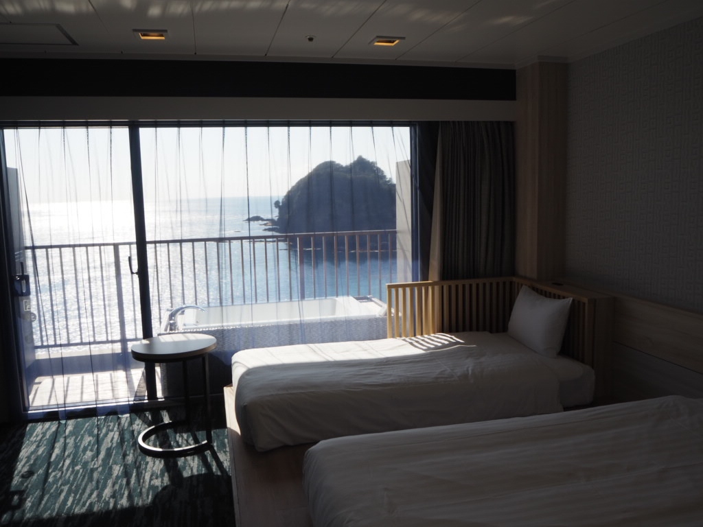 開業2年という施設の新しさと海を望む絶景露天風呂に惹かれて宿泊しました。