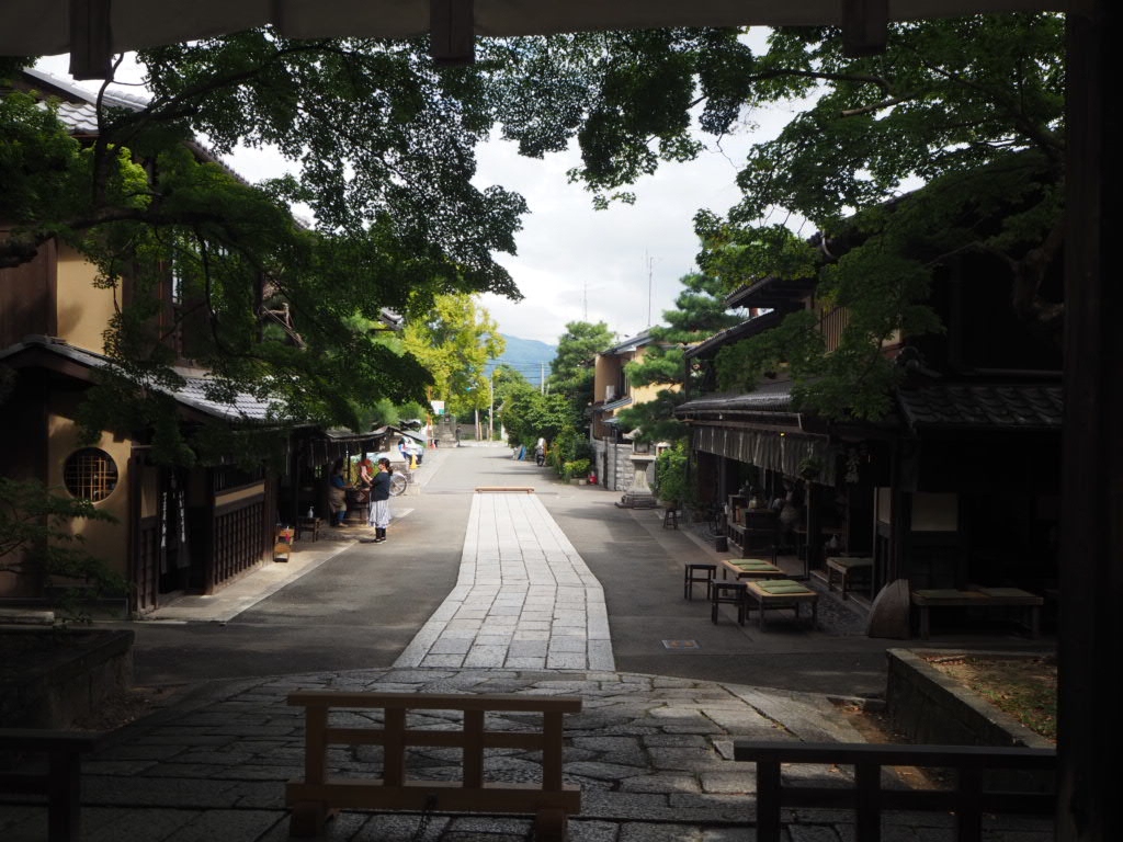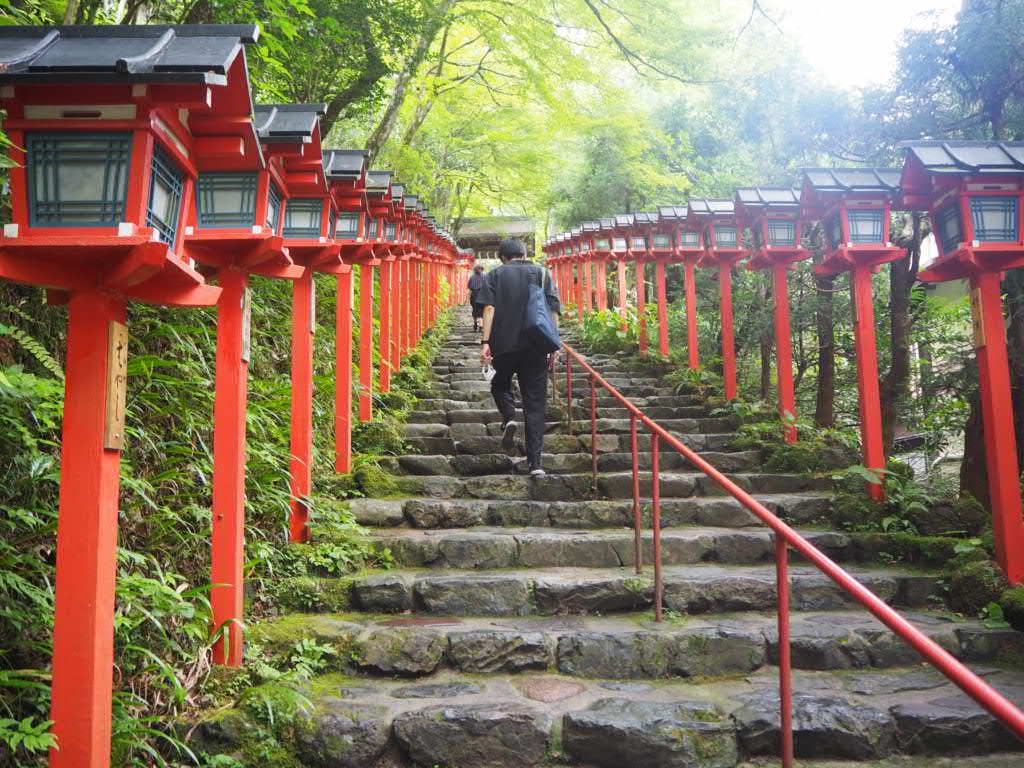 川床料理店が立ち並ぶ中、社へ向かう灯籠の並ぶ階段から雰囲気は満点です。