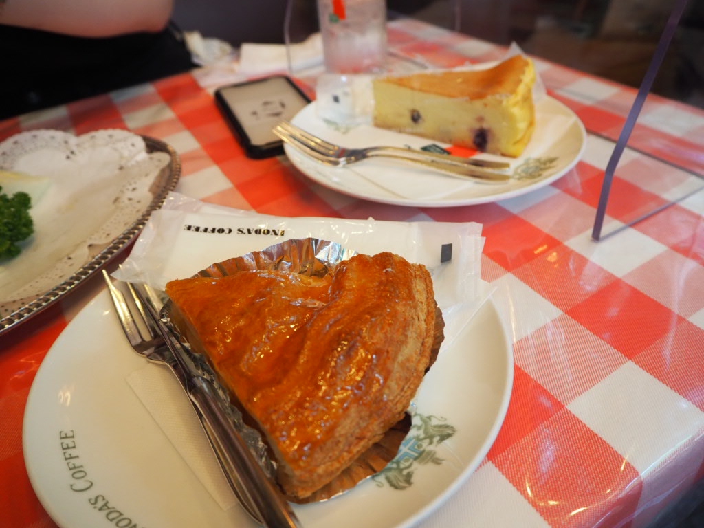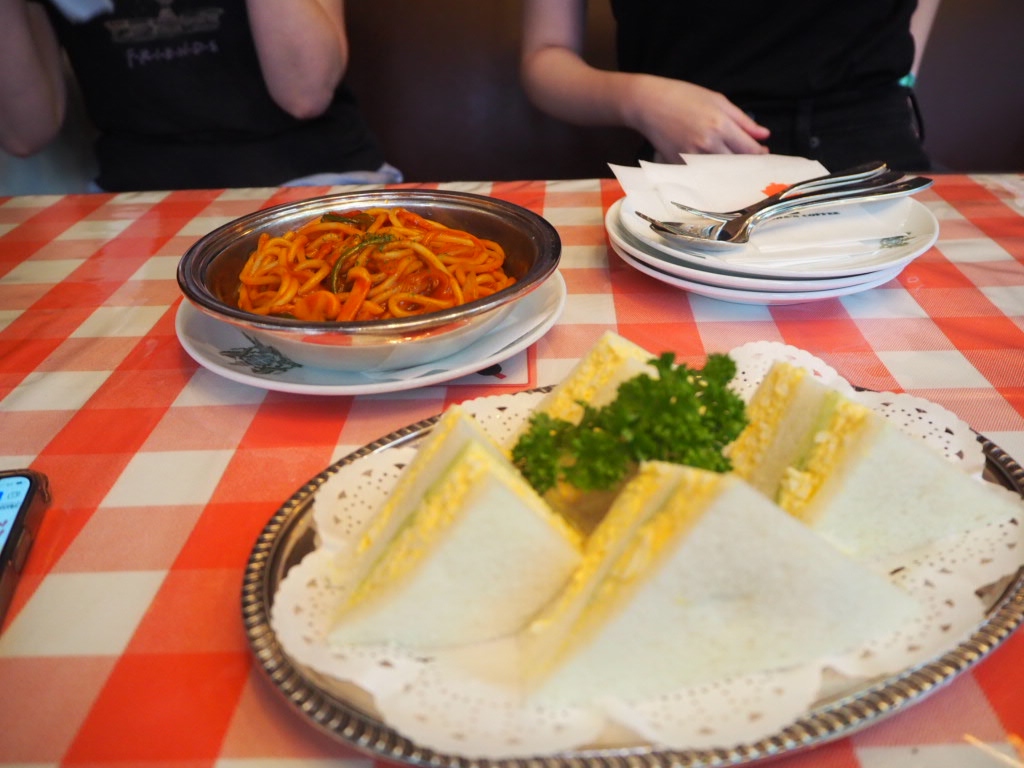 イタリアンスパゲティ、たまごサンド、アップルパイ、チーズケーキ、コーヒーをいただきました。