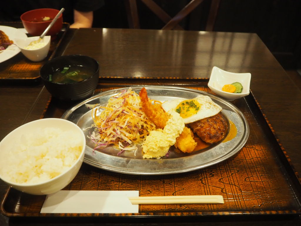 ハンバーグとエビフライ盛り合わせのBセットをいただきました。