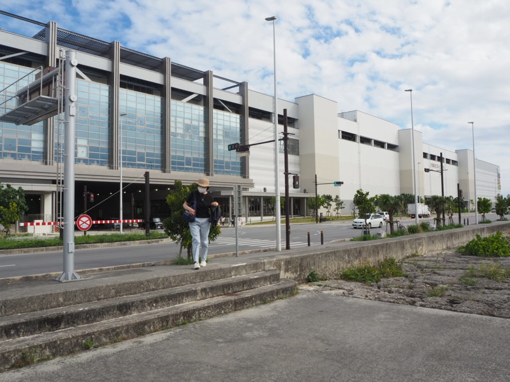 浦添の海岸沿いに立つ白い巨大な建物です(2棟に分かれています)