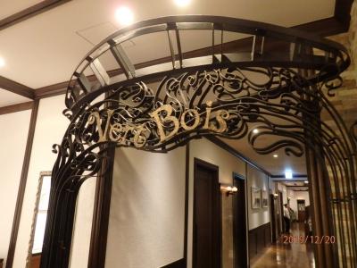 エントランスの店名オブジェはアールヌーボー風で気分が上がります。
