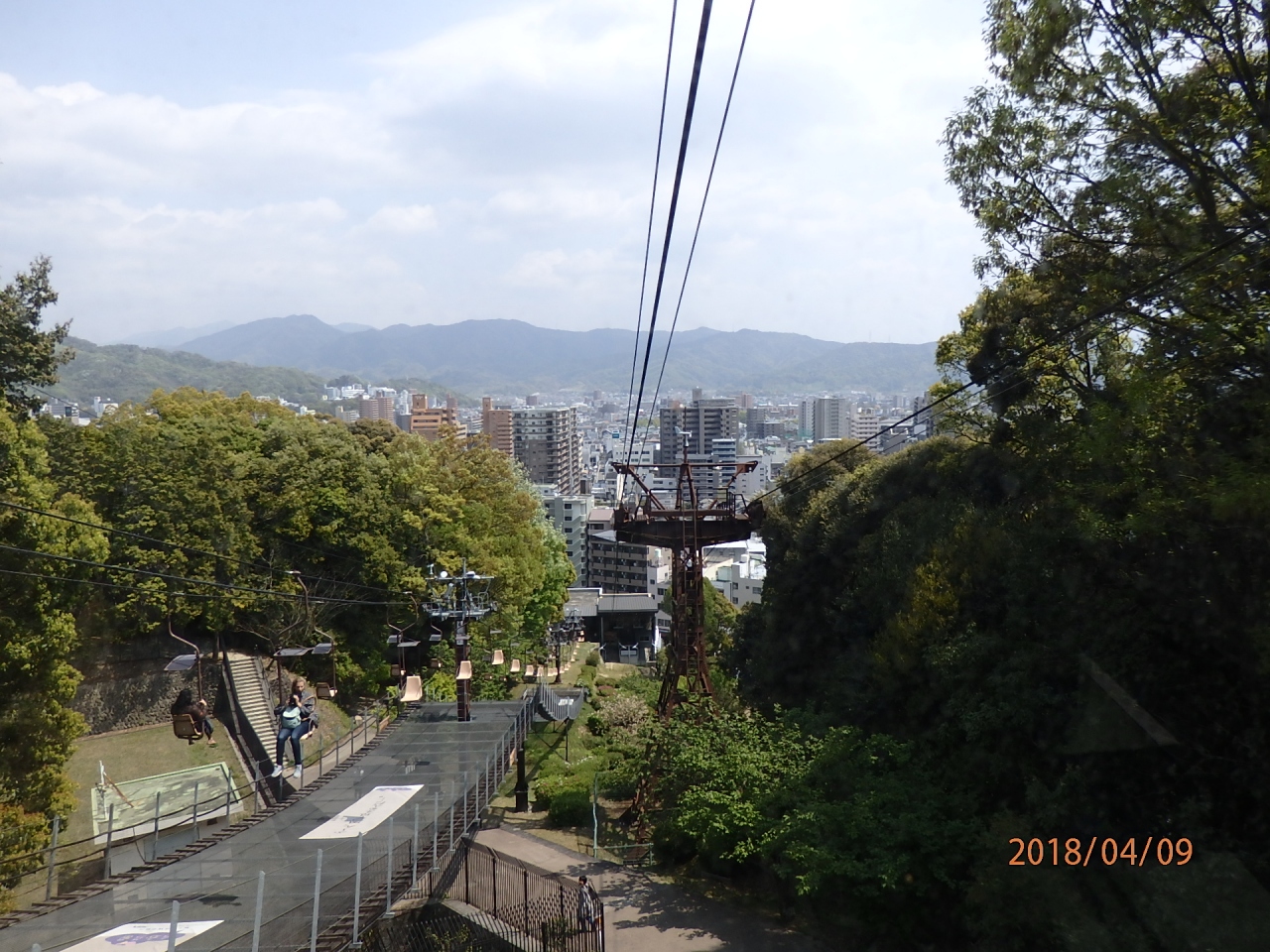 大街道電停・バス停から歩いて5分ほど、東雲登山口から乗車します。プラットホームまではエスカレーターなどで楽にアクセス出来ました。マドンナ姿のガイドさんが、城の成り立ちや歴史などを簡単に説明してくれますので登りは絶対にお勧めします。帰りは共通利用できるリフトも気分が良いですよ。
