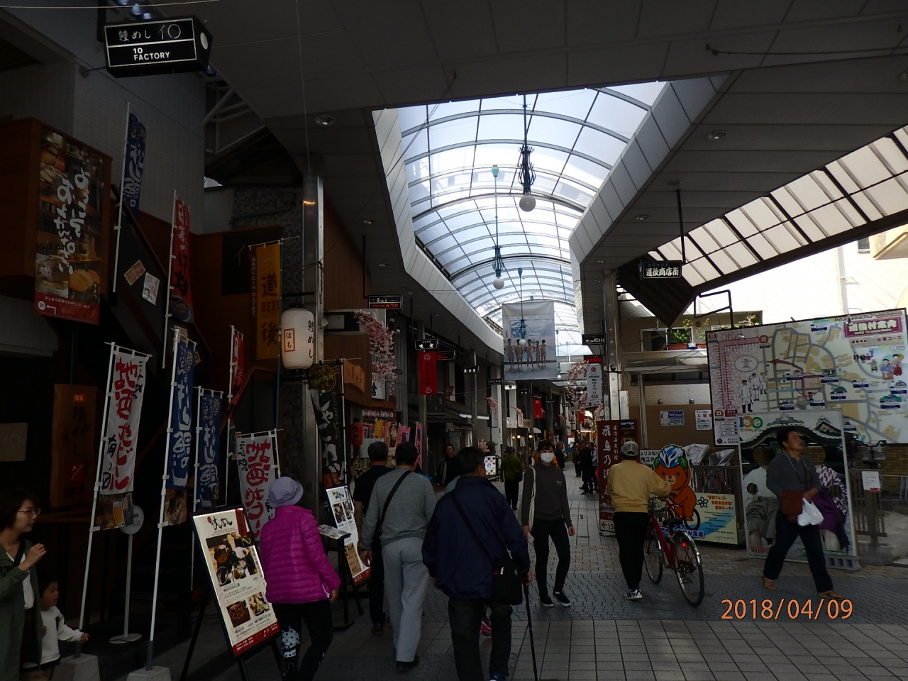 市内電車道後温泉駅を降りて、道後温泉本館・新館へ行く途中にあるアーケード商店街。松山グルメの食事、喫茶、お土産(お菓子やタオルなど)のお店が連なっています。中には元祖坊っちゃん団子「つぼや(火曜定休)」があります。