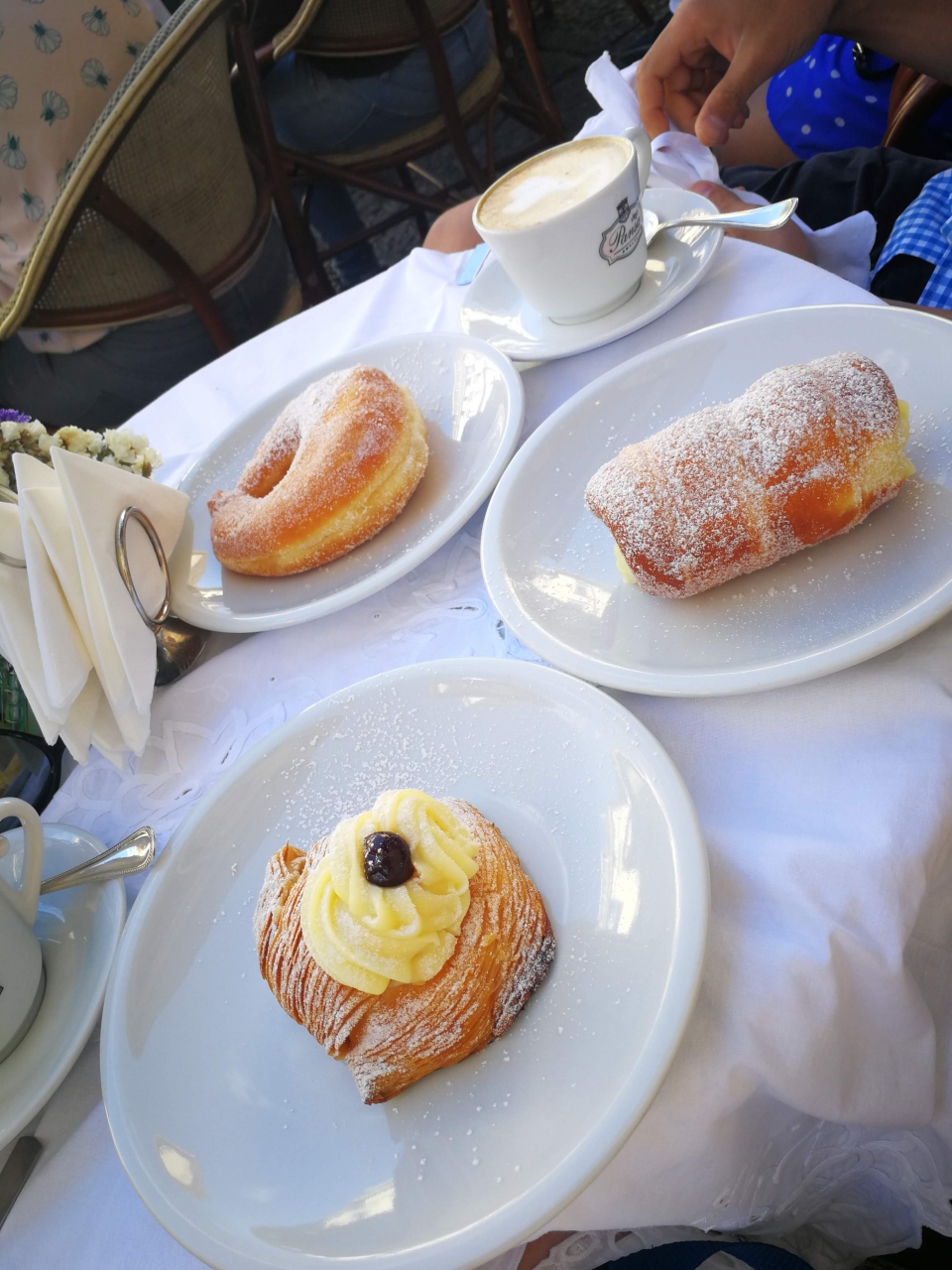 夫と2人でパン3つとカフェラテ2つで€24と少しお高めです。