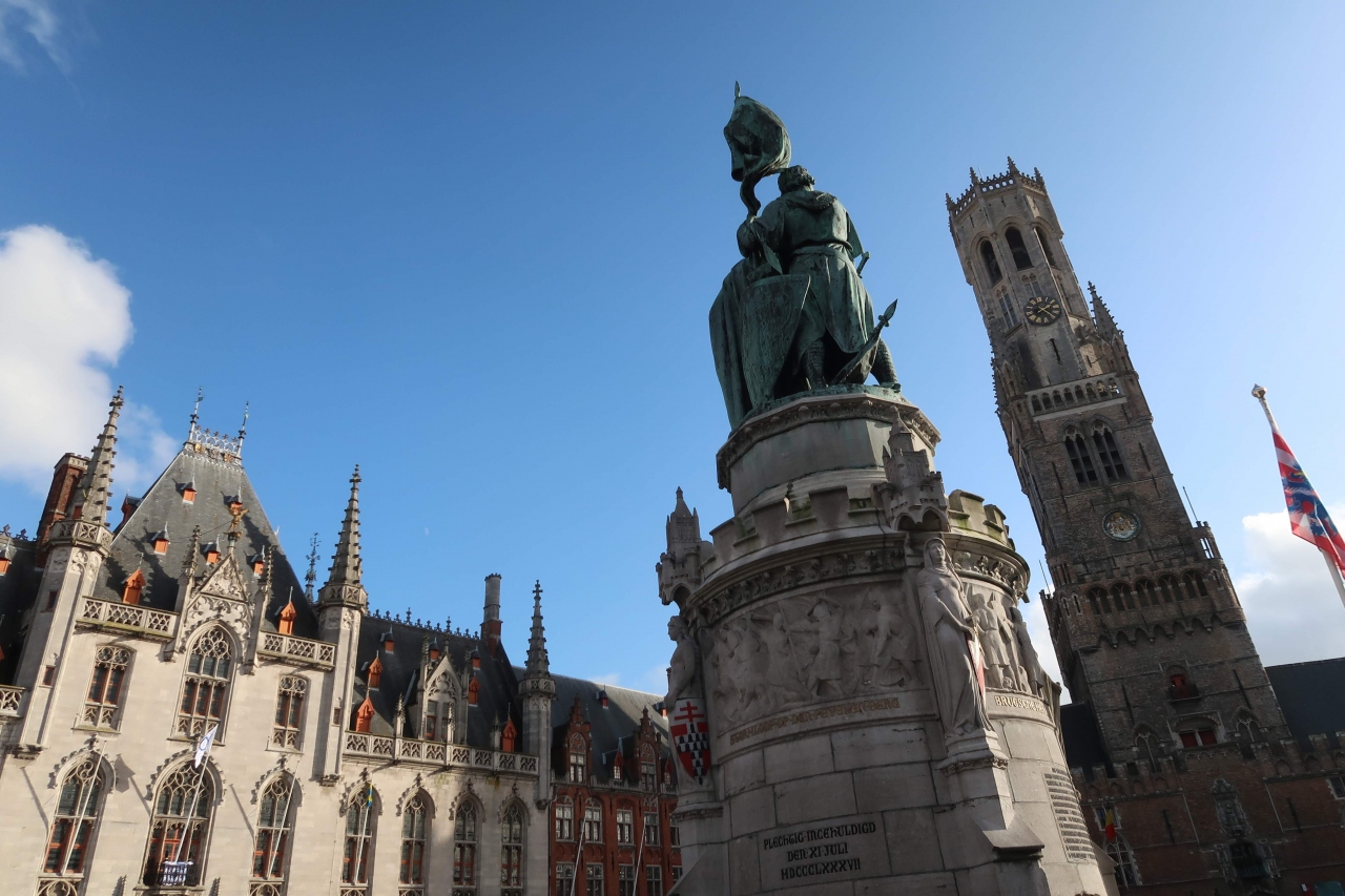 マルクト広場のど真ん中に立っています。周りにはブルッヘの鐘楼やギルドハウスが立ち並んでいる観光名所です。